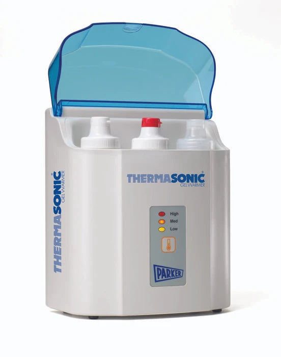 he Parker Thermasonic® Multi Bottle Gel Warmer 230V LED of Parker Laboratories has a powerful heating element which brings bottles and packettes of ultrasound gel to desired temperature quickly and efficiently.